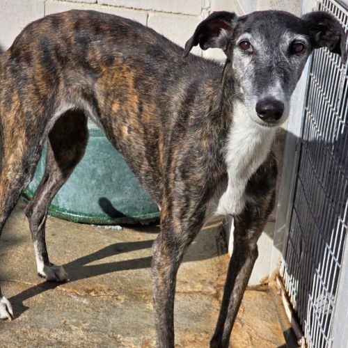 Rhianna is one of five Spanish galgos arriving at the end of October! She is a gorgeous brindle female who just turned eight on October 2.